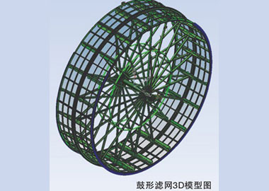 鼓形滤网是核电站、火力发电厂、化工、城市自来水、环保污水处理厂等供水系统中的重要滤水设备,它由驱动装置带动传动轴上的小齿轮,并驱动鼓网上的大齿圈旋转,通过网片和捞污斗将大于网孔的漂浮物和悬浮物捞出水面后,由自动冲洗装置将污物冲洗到集污坑,从而使网板网孔不被污物堵塞,保持网板干净正常运行。